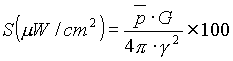式中: S──功率密度,W/m 2 ;